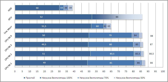 Все функции автоматического контроля вентиляторов отключены, только видеокарта работала в автоматическом режиме.
