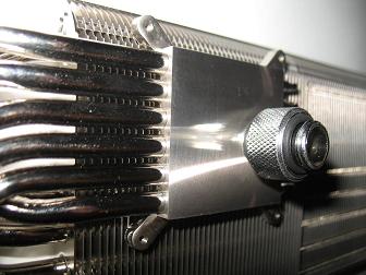 Конструкция кулера такова, что в собранной системе горячий воздух с кулера эффективно не выдувается наружу и скапливается в нижней части корпуса, дополнительно подогревая видеокарту. Даже задний корпусный вентилятор может не достаточно эффективно справляется с отводом горячего воздуха наружу. В связи с этим для кулера T-Rad2 исключительно рекомендуется использовать корпус, где напротив видеокарты, в дверце корпуса, установлен вентилятор. Замечу, что лучше расположить вентилятор так, чтобы его воздушный поток дул наружу, т.е. выдувал горячий воздух от видеокарты, - этом случае эффективность охлаждения будет на несколько градусов лучше.