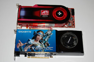 Честь NVIDIA отстаивают две платы Gigabyte - GeForce GTX260 Core 216 и GeForce GTX285. К сожалению, ни первая, ни вторая не являются конкурентами Radeon HD4890 в полной мере. Видеокарта GeForce GTX260 Core 216 - полноценный конкурент Radeon HD4870, но стоит немного дороже, находясь по этому показателю как раз посередине ценового промежутка между HD4870 и HD4890. GeForce GTX285 является самой производительной однопроцессорной видеокартой Nvidia. Думаю, всем будет интересно посмотреть разницу в производительности между 285-й и HD4890.