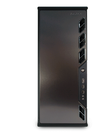 Кнопки включения и сброса, а также индикатор активности жестких дисков находятся в правой части передней панели над внешними портами, и закрываются дверцей. Кнопку питания в принципе можно изловчиться нажать через вентиляционное отверстие в дверце (ваш маленький ребенок обязательно научится :)). А индикатор активности жестких дисков закрывается неплотно; он частично виден и за закрытой дверцей. Не знаю, было ли так задумано, но у меня создалось ощущение, что вентиляционные отверстия в дверцу врезались в спешке, и их сопряжение с передней панелью несколько недодумано.