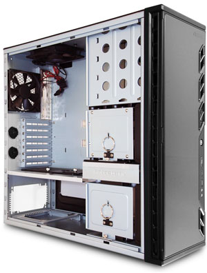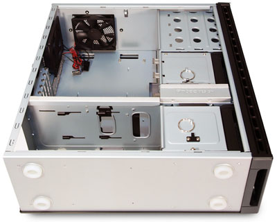 Общая внутренняя компоновка по сравнению с P180 изменилась мало. Тот же "двухкамерный" дизайн с выделенным отсеком для блока питания.