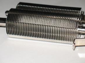 Кулер представляет собой круглое медное основание с наклеенной прокладкой из мелкопористой резины для предотвращения повреждения чипсета, из которого строго вверх выходит одна прямая тепловая трубка диаметром 10 мм. На нее нанизано 42 алюминиевые пластины круглой формы, каждая из которых имеет четыре крупные прорези для улучшения конвекции. Дополнительно к основанию прикреплена вторая тепловая трубка диаметром 6 мм, содержащая такое же количество пластин, которые немного меньше диаметром. Этот “отросток” свободно вращается вокруг центральной “башни” и прижимается только после установки кулера. Подобная мера позволяет ориентировать кулер на плате так, чтобы “отросток” не задевал ни за какие элементы. Сверху на тепловые трубки надеты колпачки.