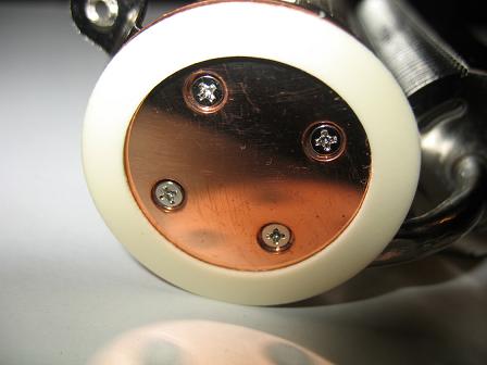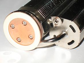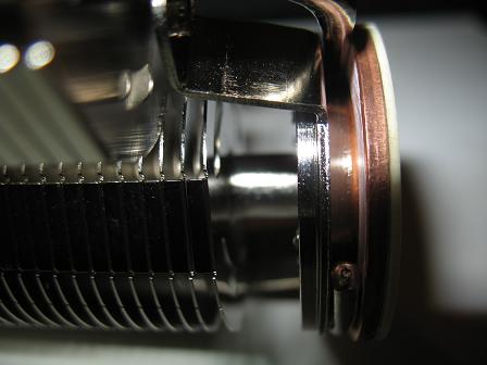 Подошва кулера круглая, основание ровное. Площадь контакта из-за наличия резиновой прокладки довольно маленькая: