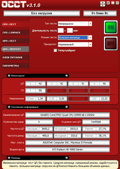 - Центральный процессор: Intel Core 2 Quad Q9550 (@3600 MHz, 1.3v)