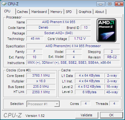 - Процессор: AMD Phenom II x4 955 (socket AM3, 3.2 Ghz)