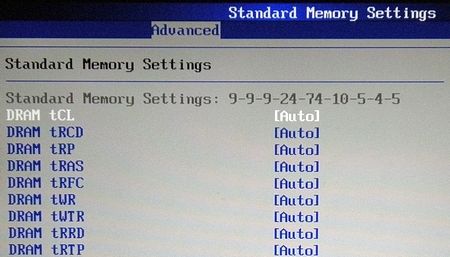 Второй раздел - «DRAM Timing Configuration» позволяет регулировать 9 основных и вспомогательных таймингов памяти DDR3.