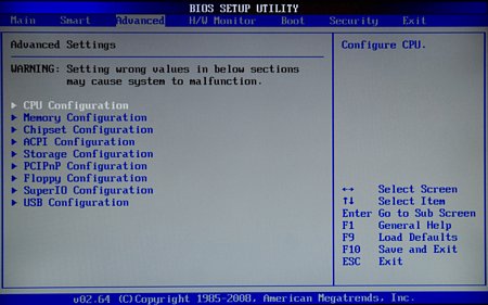 Первый из них - CPU Configuration