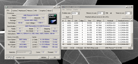 На этот раз материнская плата от ASRock не смогла порадовать нас разгоном процессора до его предела (3.98-4 ГГц на лучших для разгона материнских платах), но, тем не менее, абсолютно функционировала под нагрузкой, создаваемой LinX 64-bit (объём памяти 2048 Мб) на частоте 3.89 ГГц, то есть на 100 МГц ниже потолка для данного экземпляра AMD Phenom II x4 955: