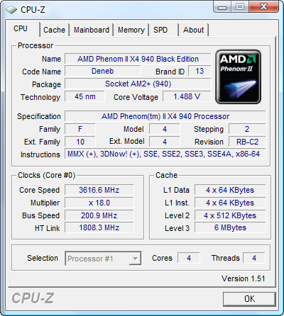 - AMD Phenom II X4 940 BE 3,0 ГГц, 1,35 В (Deneb, RB-C2)