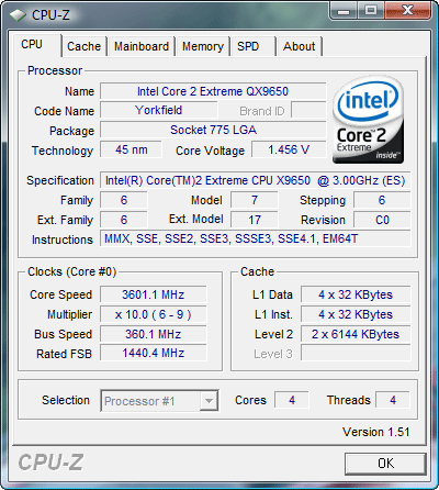 - Intel Core 2 Extreme QX9650 3,0 ГГц, 1,25 В (Yorkfield, C0);
