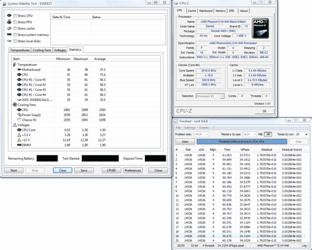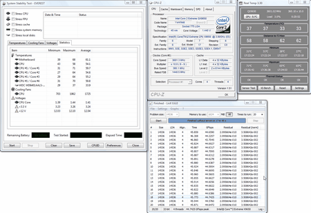 Для того, чтобы усложнить нагрузку кулерам и увеличить тепловыделение процессоров, они были разогнаны до 3,6 ГГц при повышении напряжения до 1,475 В для AMD Phenom II X4 и до 1,45 В для Intel Core 2 Extreme: