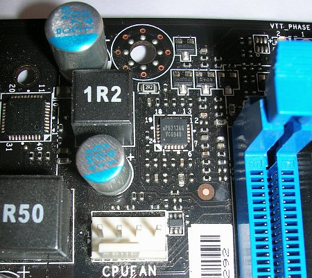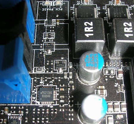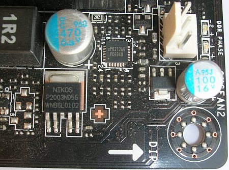 Питание памяти и чипсета (P55 PCH) так же двухфазное и на основе uPI uP6212A: