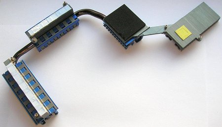 Третий радиатор находится в том месте, где раньше был северный мост. Снизу он заклеен куском теплоизоляции. Четвертый радиатор закрывает южный мост P55 PCH.