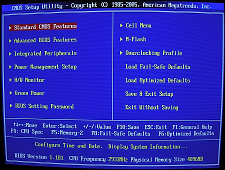 Как и большинство других материнских плат производства MSI, модель P55-GD80 использует код AMI BIOS. Плата попала к нам с версией BIOS 1.1 beta 1 от 22 июля 2009 года и с ней же была протестирована. С этой версией в работе материнской платы были обнаружены только две крупные проблемы, но они были решены в версии BIOS 1.3 beta 4 от 21 августа 2009 года полученной уже после завершения тестирования. Первая проблема - несоответствие реального напряжения на процессоре и установленного в BIOS (Vdrop), а так же сильное падение этого напряжения под нагрузкой (Vdroop). Были проведены замеры напряжения мультиметром под нагрузкой в программе LinX и без неё. Они совпали с показаниями в программе CPUZ, но расхождения с напряжением, установленным в BIOS, были огромны: