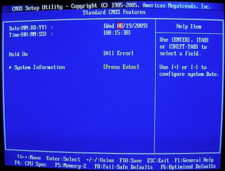 В нем можно изменить дату и время, а так же посмотреть информацию об установленном процессоре:
