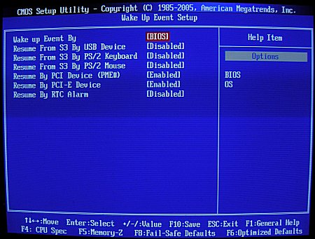 В подразделе Wake Up Event Setup можно определить события, при которых компьютер будет пробуждаться из спящего режима: