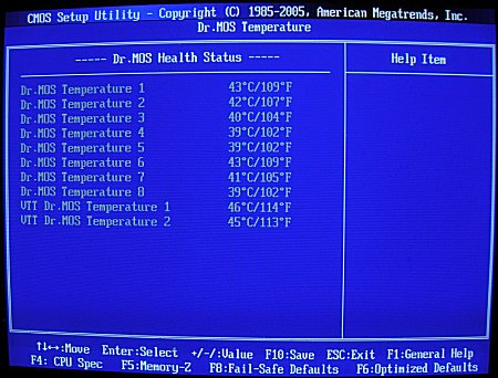 В отдельный подраздел Dr.MOS Temperature выведены температуры всех десяти микросхем Dr.MOS, входящие в систему питания процессора (8 на Vcore и 2 на CPU VTT):
