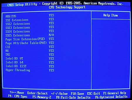 В подразделе CPU Specifications можно посмотреть информацию об установленном процессоре и поддерживаемых им технологиях: