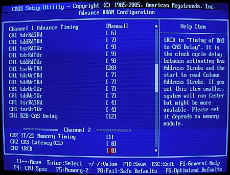 В подразделе Advance DRAM Configuration можно вручную задать тайминги памяти раздельно для каждого из двух каналов: