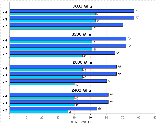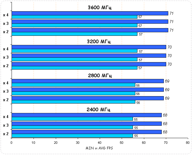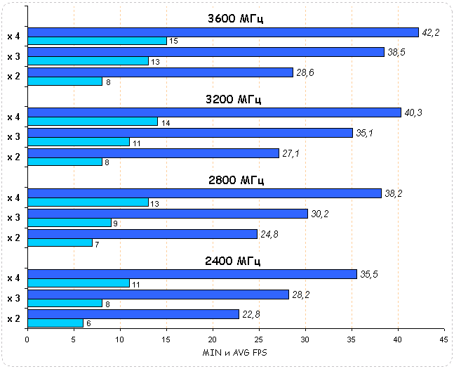 В тестировании этой игры не указан min fps, так как брался средний результат четырех тестовых сцен. Но, не смотря на высокие показатели avg fps в нагруженных сценах, все процессоры на любых частотах показали низкий min fps.