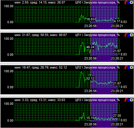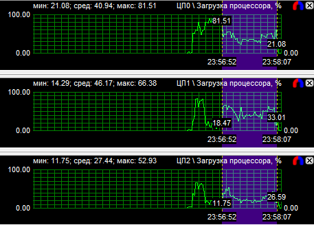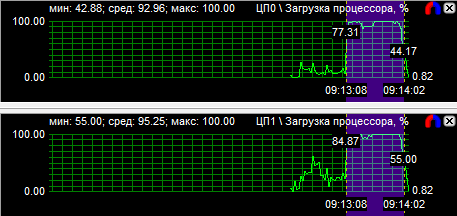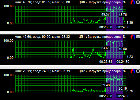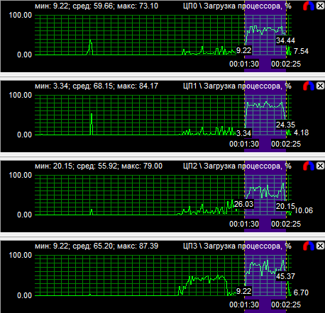Тестирование подтвердило нашу гипотезу - у всех процессоров наблюдается равная производительность.