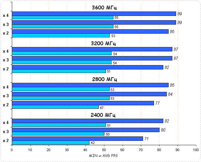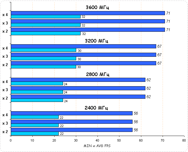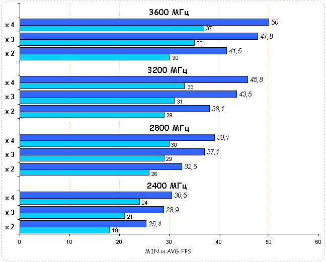 Бросается в глаза процессорозависимость игры: повышение частот приводит к линейному росту производительности. Так разгон процессора на 50% повышает производительность системы: