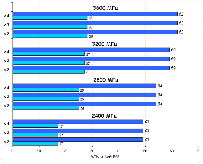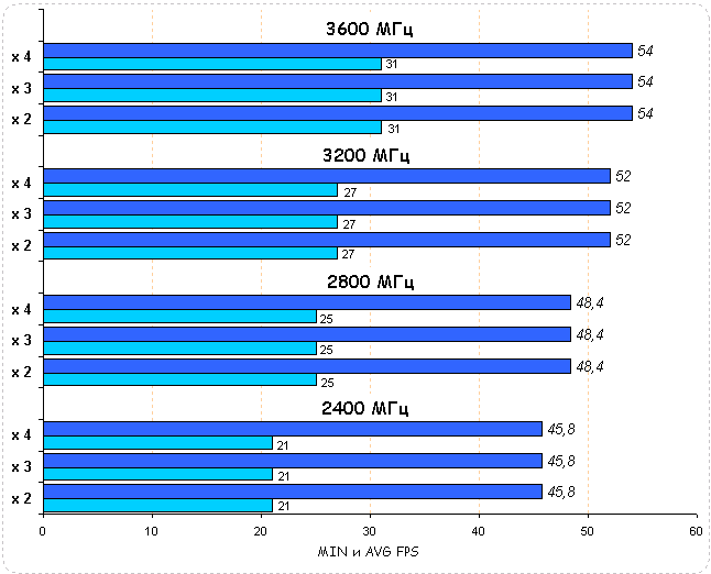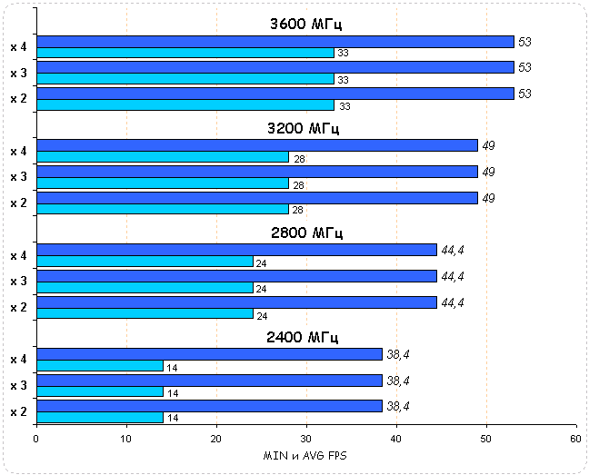 Повышение частоты процессоров приносит системе практически линейный рост производительности. Разгон CPU на 50% повышает производительность системы на 18%.