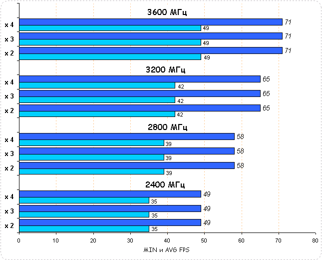 Игра действительно оказалась процессорозависима - разгон CPU 50% повысил производительность системы на 24-25%.