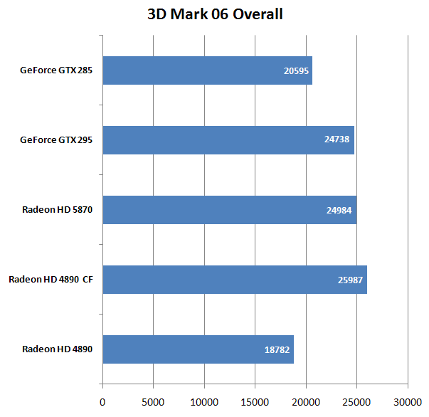 В 3D Mark 06 двухчиповые конфигурации (назовем их так) делят первое и второе место, на третьем - HD 5870.