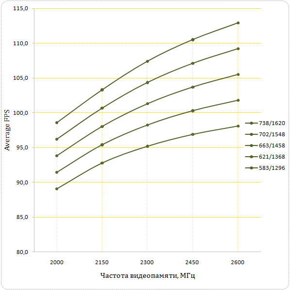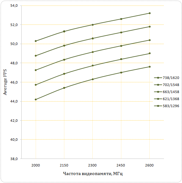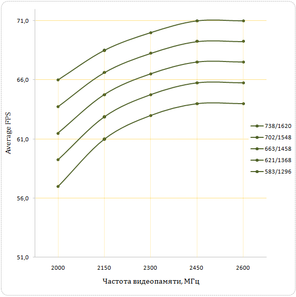 В этой игре для роста производительности графического акселератора важную роль играют как разгон графического ядра/шейдерного домена, так и видеопамяти.