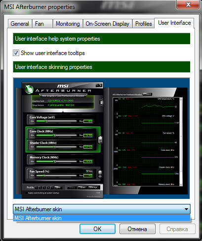 В закладке "User Interface" можно установить разные скины интерфейса утилиты. У данной утилиты он один, дефолтовый.
