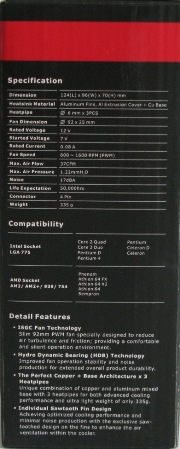 С правой стороны коробки расположены технические характеристики и таблица совместимости с процессорами.