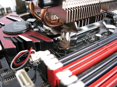Во всех остальных положениях кулер или цеплял радиаторы материнской платы ASUS Maximus III Formula, или перекрывал первый слот оперативной памяти.