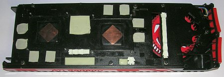 Для решения этой проблемы нужно было выточить углубления (нужно было всего лишь 1-2 миллиметра) в стаканах, в тех местах, где он упирается в дроссели. Это уже было сделано ранее, для того чтобы установить эти же стаканы на Radeon HD4870X2. Но на Radeon HD5970 дроссели расположены по-другому. Вытачивать для них еще одни углубления, у нас не было времени, так как видеокарту нужно было возвращать сразу после тестирования.