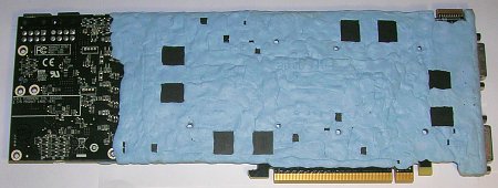 В качестве видеопамяти используется 16 микросхем Hynix H5GQ1H24AFR-T2C, рассчитанных на работу с частотой 1250 (5000) МГц и напряжением 1.5V: