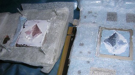 С обратной стороны видеокарты, напротив GPU наносим еще слой бостика. Если этого не сделать, то на этих местах образуется слой снега, который затем может упасть на материнскую плату.