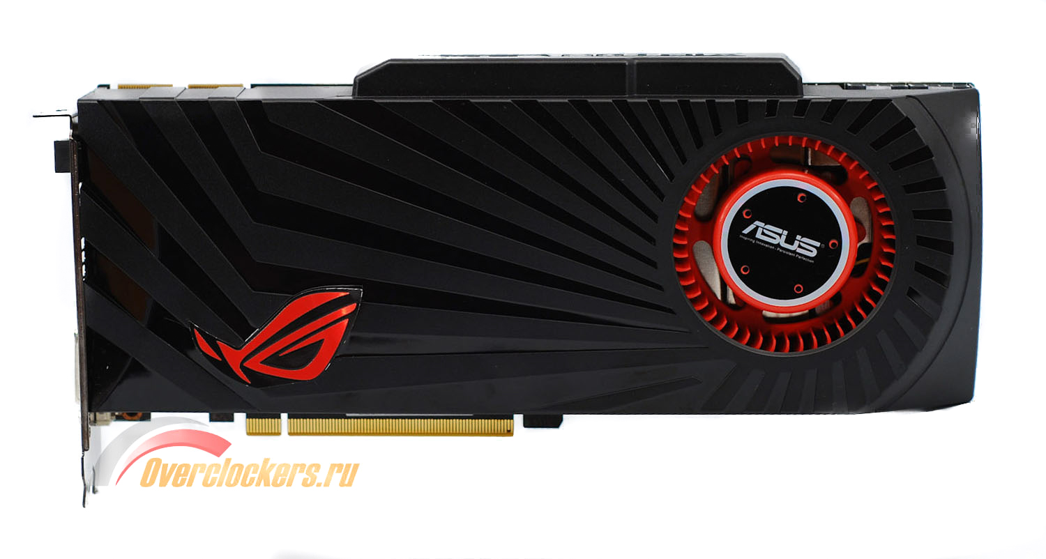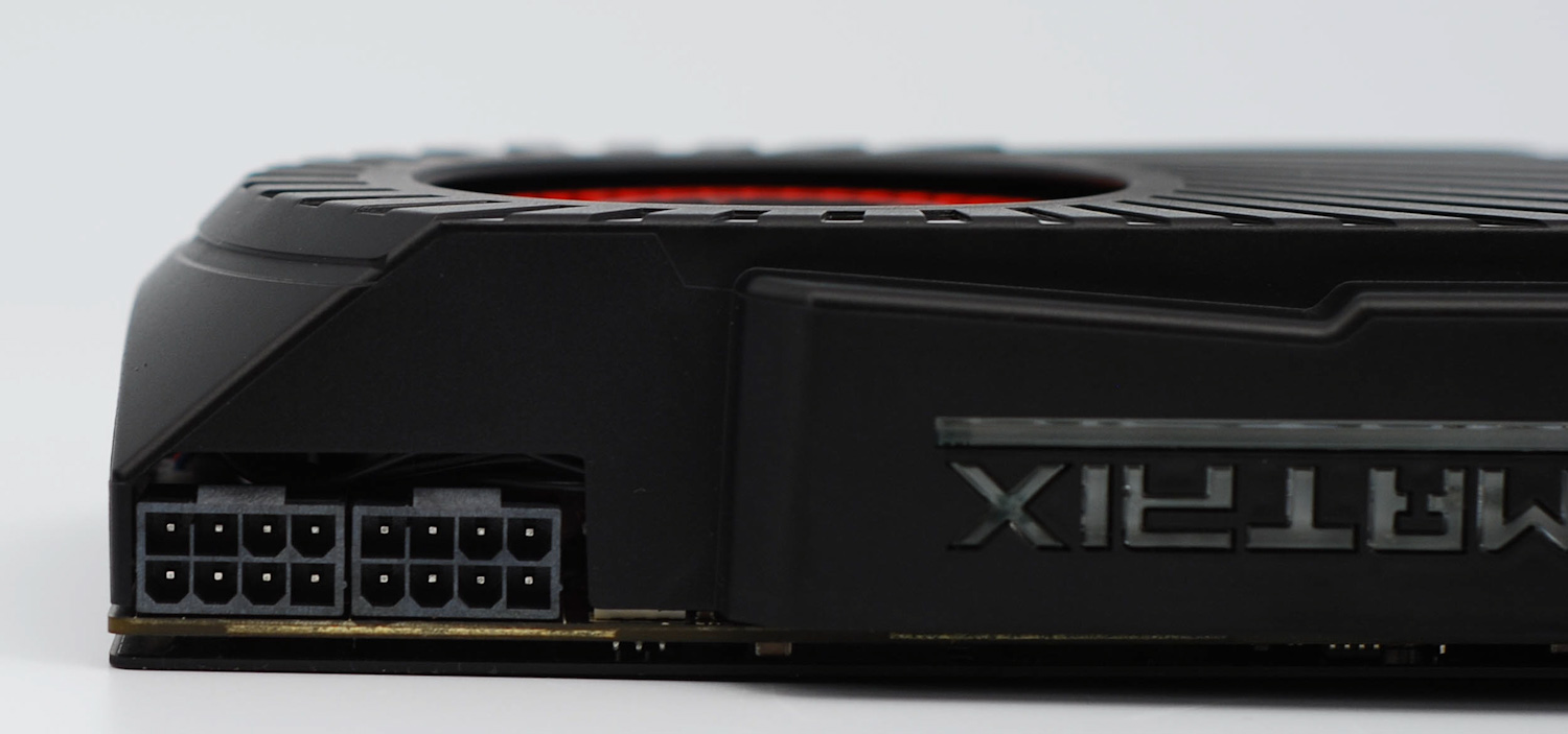 Здесь мы можем подробнее рассмотреть надпись «Matrix». Сей логотип должен светиться соответствующим цветом при определенной нагрузке, а мы – припомнить, что для демонстрации всей своей мощи видеокарте необходимо 2x8-контактное питание.