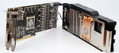 Система охлаждения демонстрирует пять тепловых трубок, как и Sapphire Radeon HD 5870 1024 Мбайт. Интересно будет сравнить функциональность систем охлаждения этих двух видеоадаптеров.