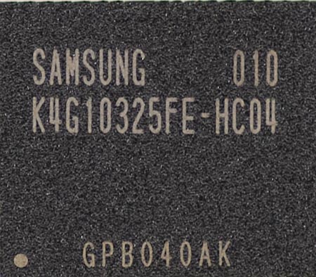 А вот и уже неоднократно виденная нами по предыдущим картам видеопамять Samsung K4G10325FE-HC04. Но здесь она выглядит как-то более чисто, аккуратно и представительно, не правда ли?