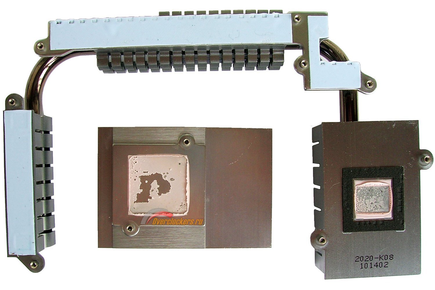 В качестве термоинтерфейса на мостах чипсета используется розовая "терможвачка", а под радиаторами обычные термопрокладки: