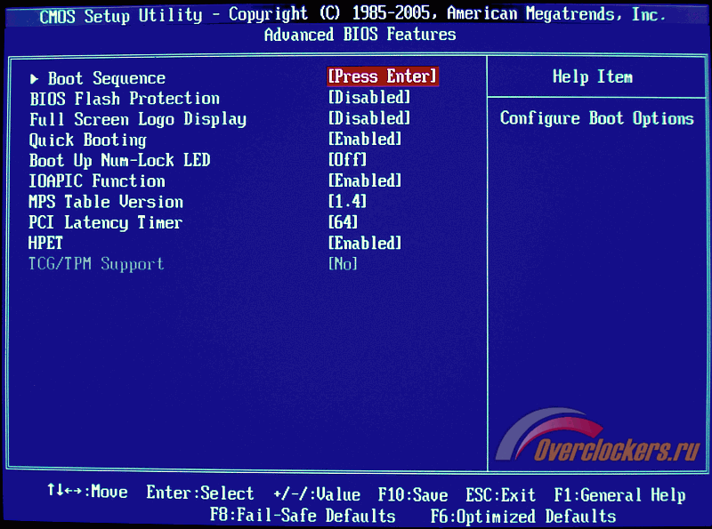 - F6 – загрузка оптимальных настроек по умолчанию;