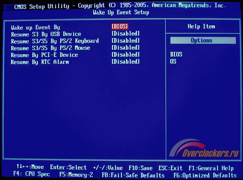 Wake Up Event Setup – выбор событий для вывода системы из "спящего" режима.