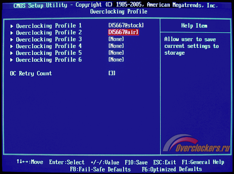 Overclocking Profile – возможность сохранить настройки BIOS в один из шести доступных профилей.
