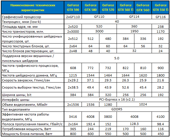 - GeForce GTX 590 3072 Mбайт - 608/1215/3414 @ 730/1460/3900 МГц (MSI)