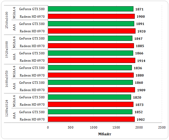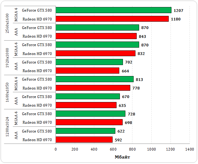 Повторюсь, что эта сцена не самая "тяжелая" для видеокарт. В игре попадались участки, где использовалось на 200 - 300 Мбайт больше в зависимости от разрешения.