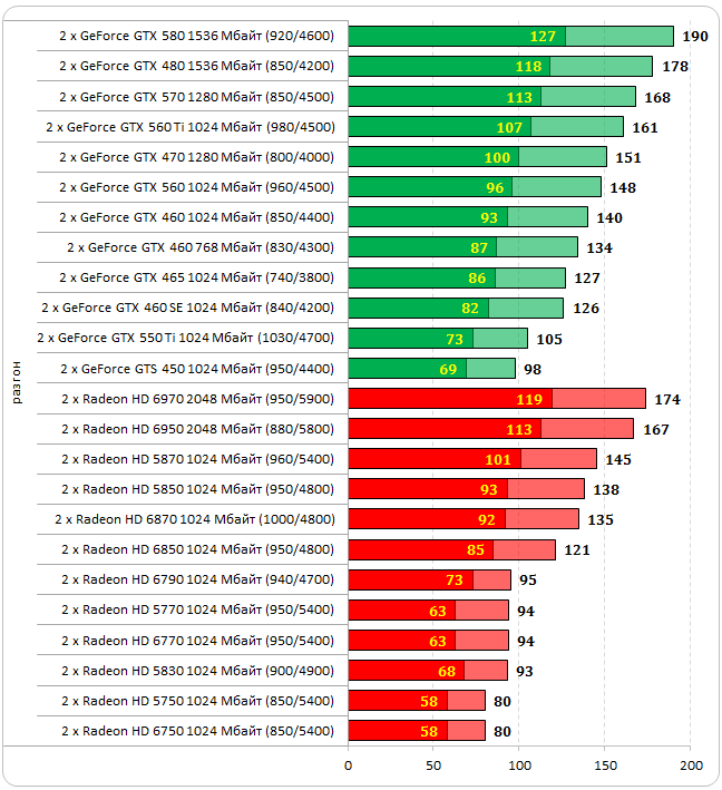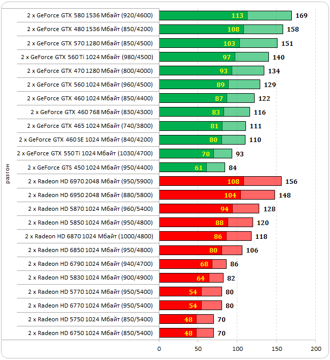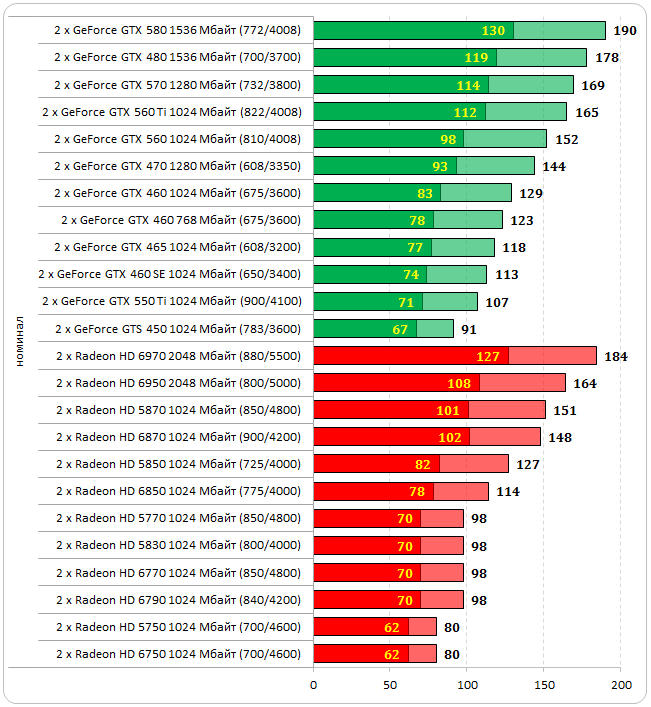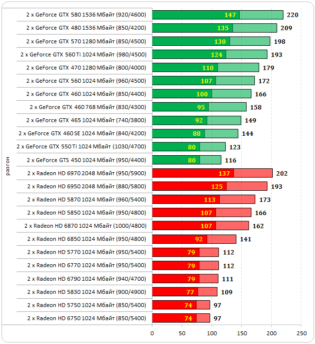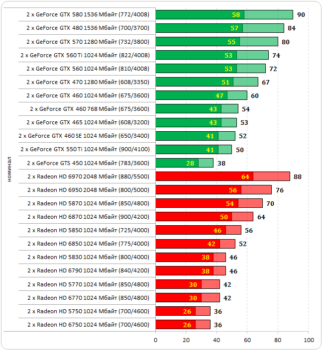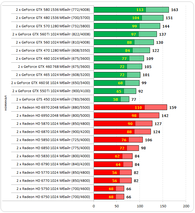 Сводные диаграммы результатов тестов CrossFireX/SLI дуэтов