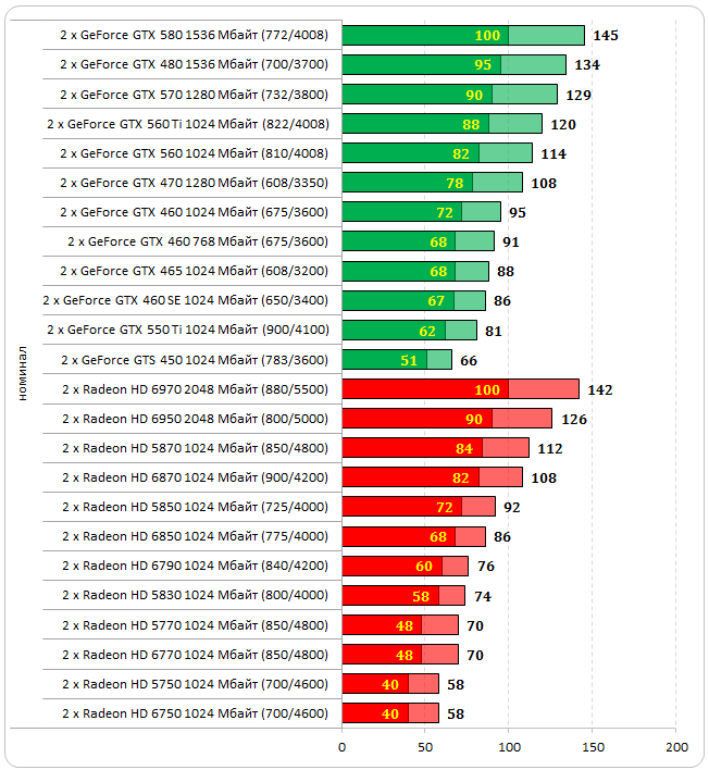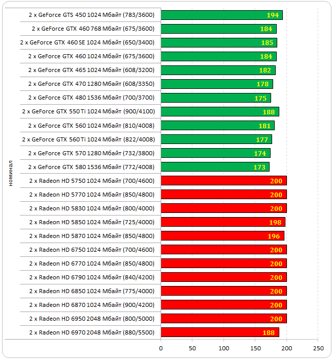 - 2 x GeForce GTS 450 1024 Мбайт - 783/1566/3608 @ 950/1900/4400 МГц (Gainward)