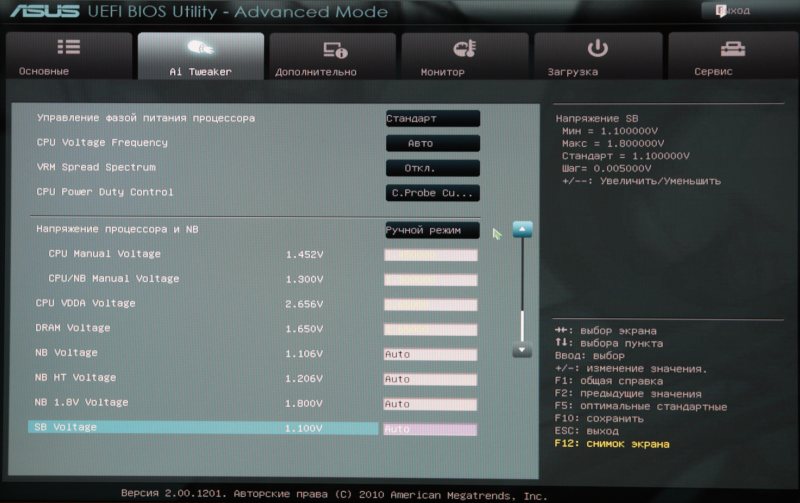 - SB Voltage (от 1.100000 до 2.200000 В с шагом 0.005000 В).