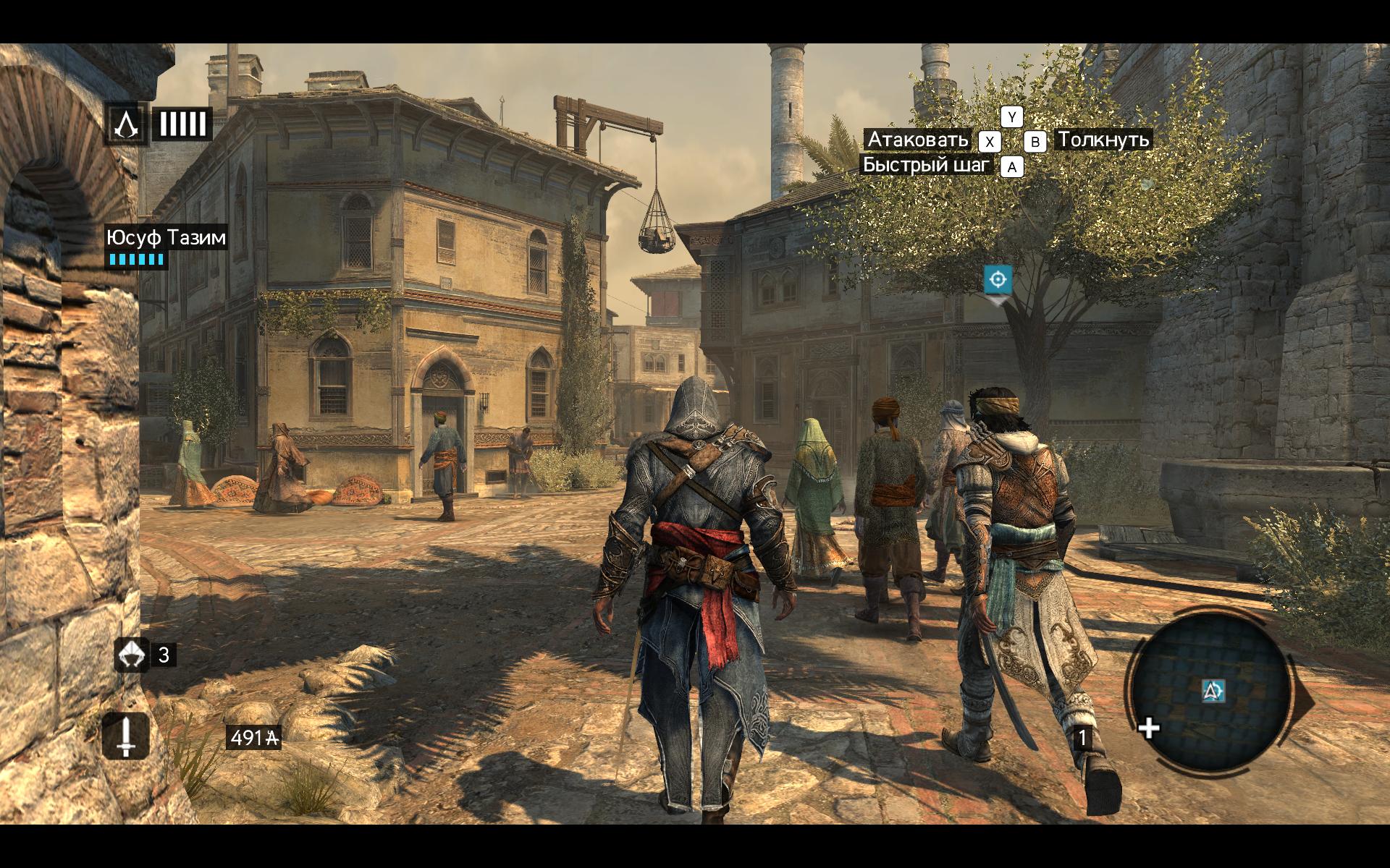 Вернувшись к Юсуфу, персонаж получил от него в подарок вместо сломанного в первой схватке клинка оттоманский нож-крюк. Дальше последовала небольшая пробежка по окружающим крышам и башня, в ходе которой Тазим наглядно объяснил Эцио как пользоваться новым оружием.