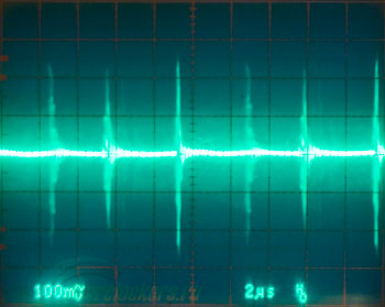 Уровень пульсаций в норме, только амплитуда высокочастотных выбросов великовата - более 200 мВ; но серьезным недостатком это не является.